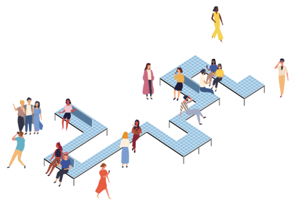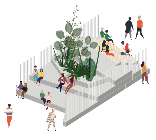Partly covered by the Green House canopy, the Story Seat will be a winding bench tiled with community poems, stories, maps and illustrations. The bench will incorporate phone charging points and a WiFi hotspot.