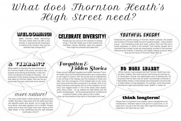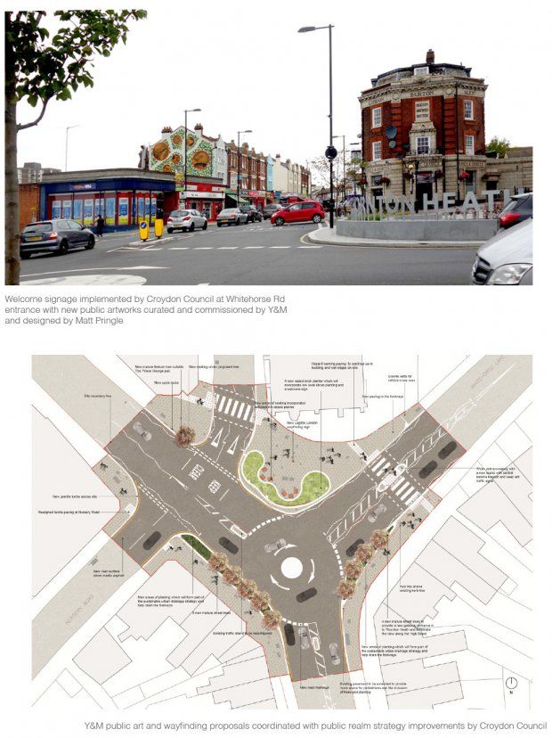 YOU&ME acted as lead consultants on the project working alongside community engagement experts Daisy Froud (formerly AOC Participation) and Public Archeologist James Dixon to develop a cohesive design strategy which reflects the area’s social and built heritage, the special characteristics of Thornton Heath’s suburban form and its ‘hidden’ heritage as well as its diverse ethnic mix. Four Local artists (Philip Dennis, Ben Connors, Mat Pringle & Snapshot Collective) were appointed to develop designs for artworks, curated by YOU&ME and inspired by community engagement creative workshop outputs (see artworks here)