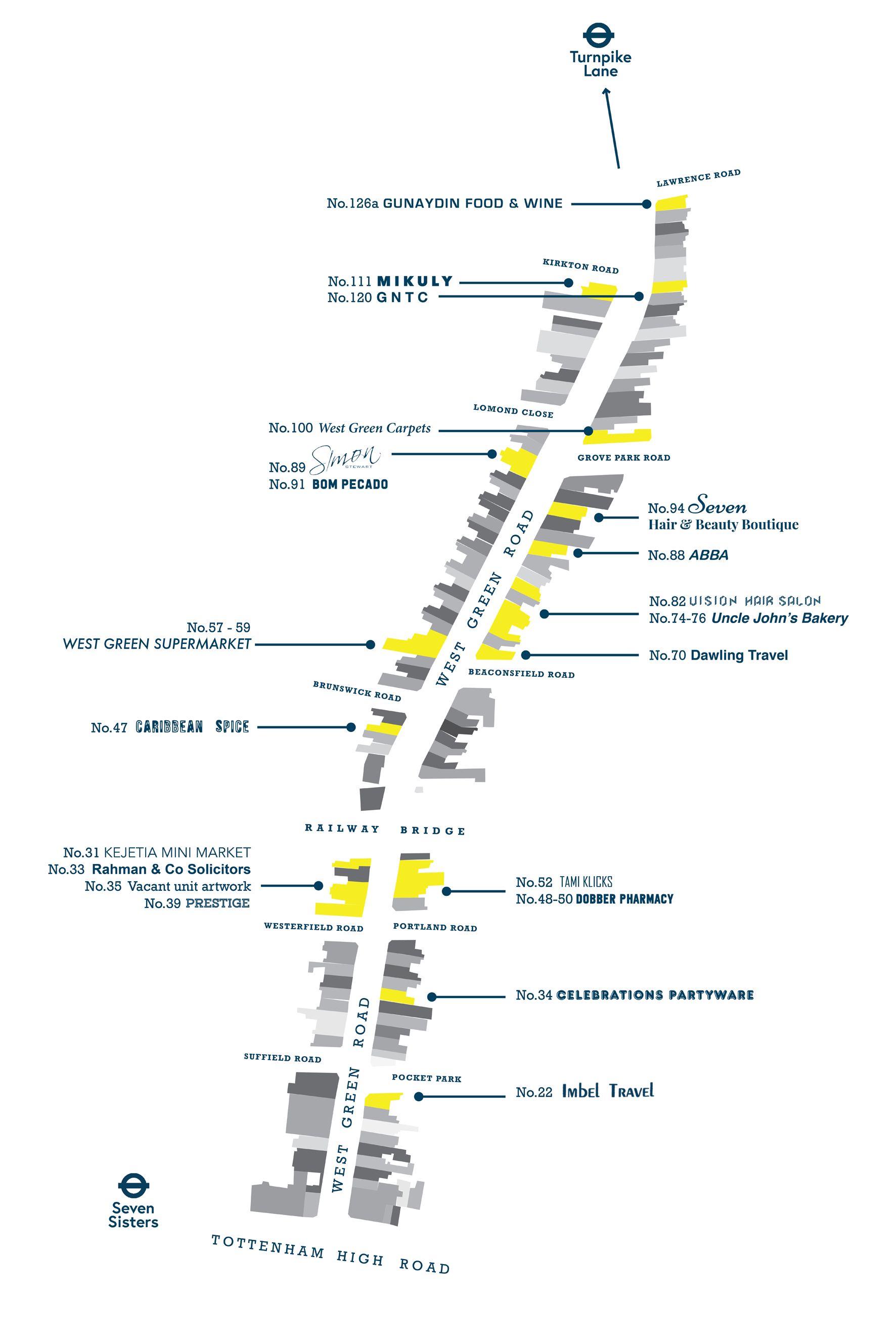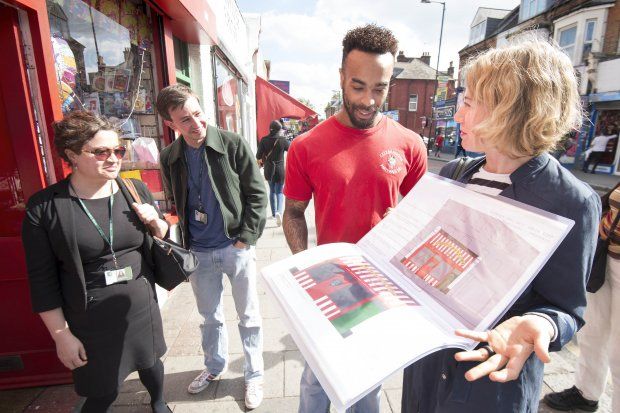 Funded through Tottenham Regeneration Programme in partnership with the Mayor of London, the project sees 22 existing shopfronts refurbished together with public realm artworks and improved lighting. The project is heavily weighted on shop keeper and public engagement - the design process has included workshops with the local community, working with local students from CONEL college, as well as talks and a public exhibition to showcase the design process.