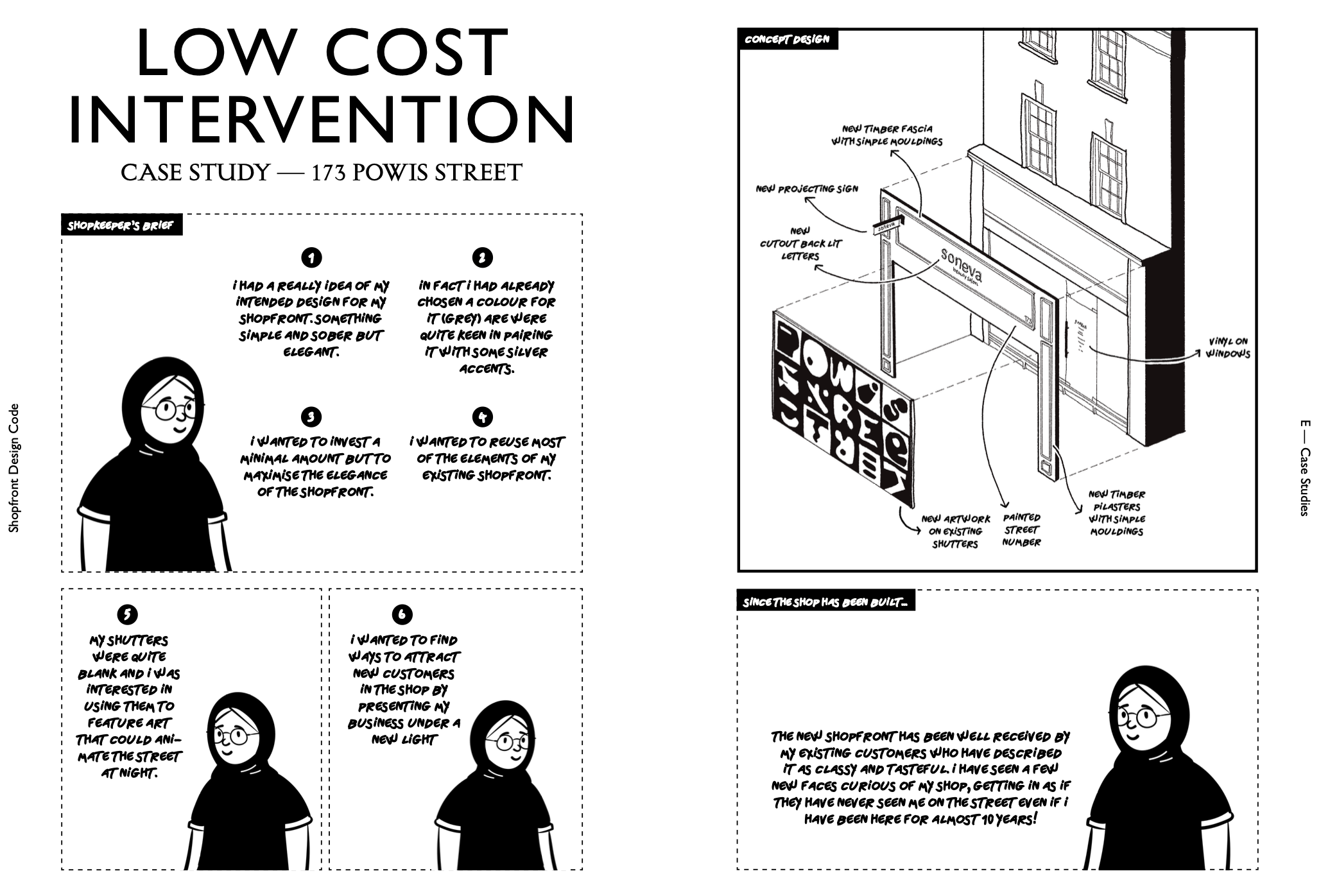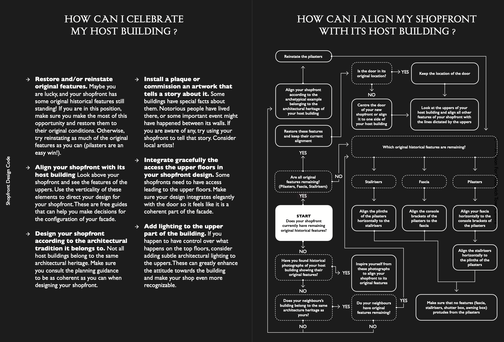 Phase 1 shops were awarded planning in January 2023 and include a mix of new and refurbished shopfronts. Selected phase 1 shops include First Choice Cafe and Charles Dance on Hare Street, and Artfix, Virtue Specs, Xposed Fashion, Soneva Beauty and Castle Tavern on Powis Street.