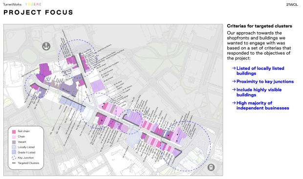 YOU&ME are working with Turner.Works, The Royal Borough of Greenwich and Historic England on high Street regeneration and place-making within Woolwich's Heritage Action Zone. The project includes a placemaking strategy, shopfront design guide and the delivery of shopfront and heritage building frontage improvements in Hare Street and Powis Street.