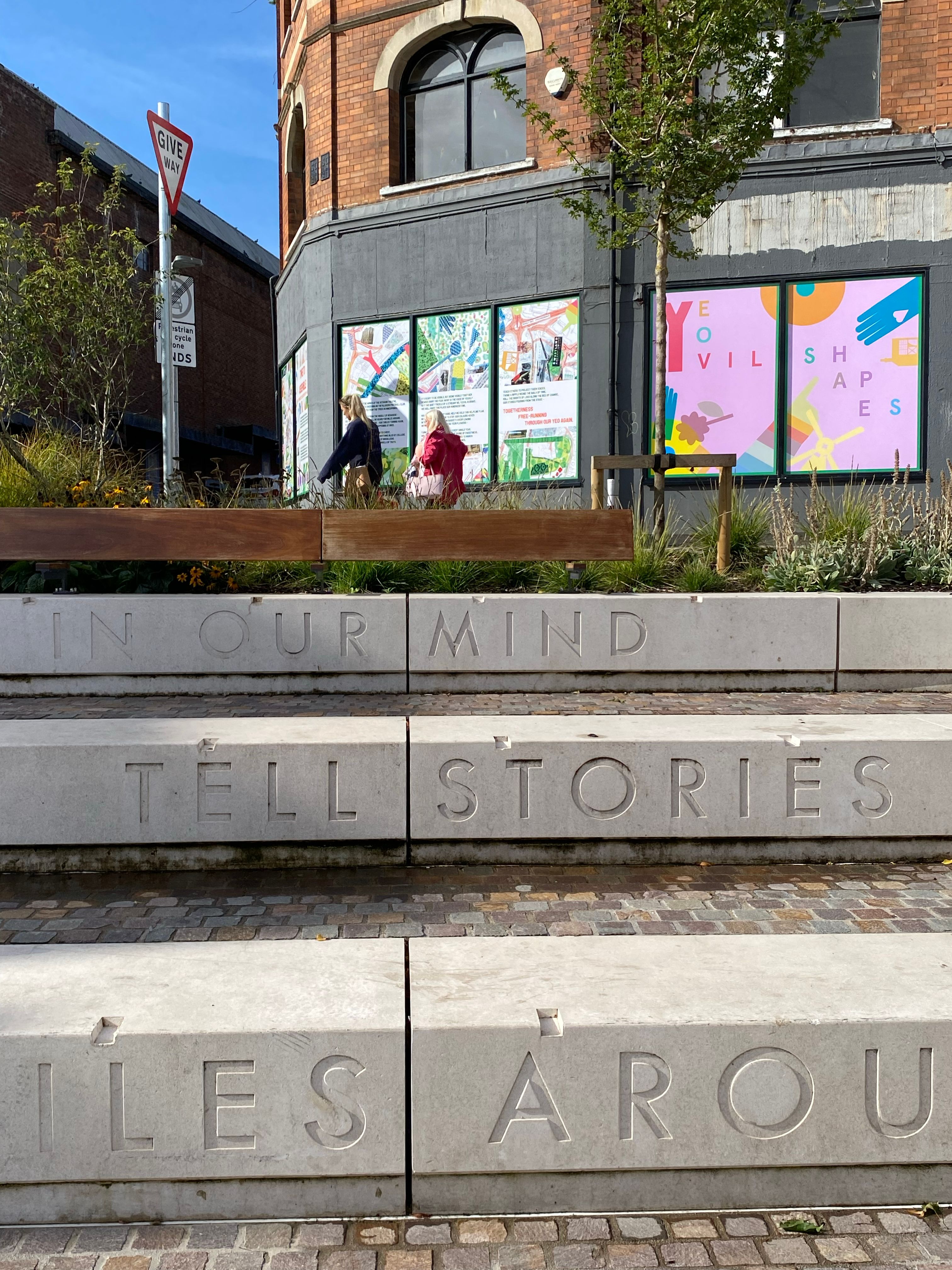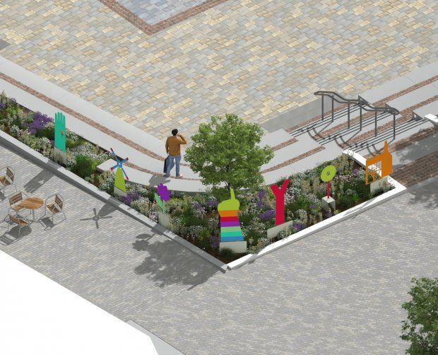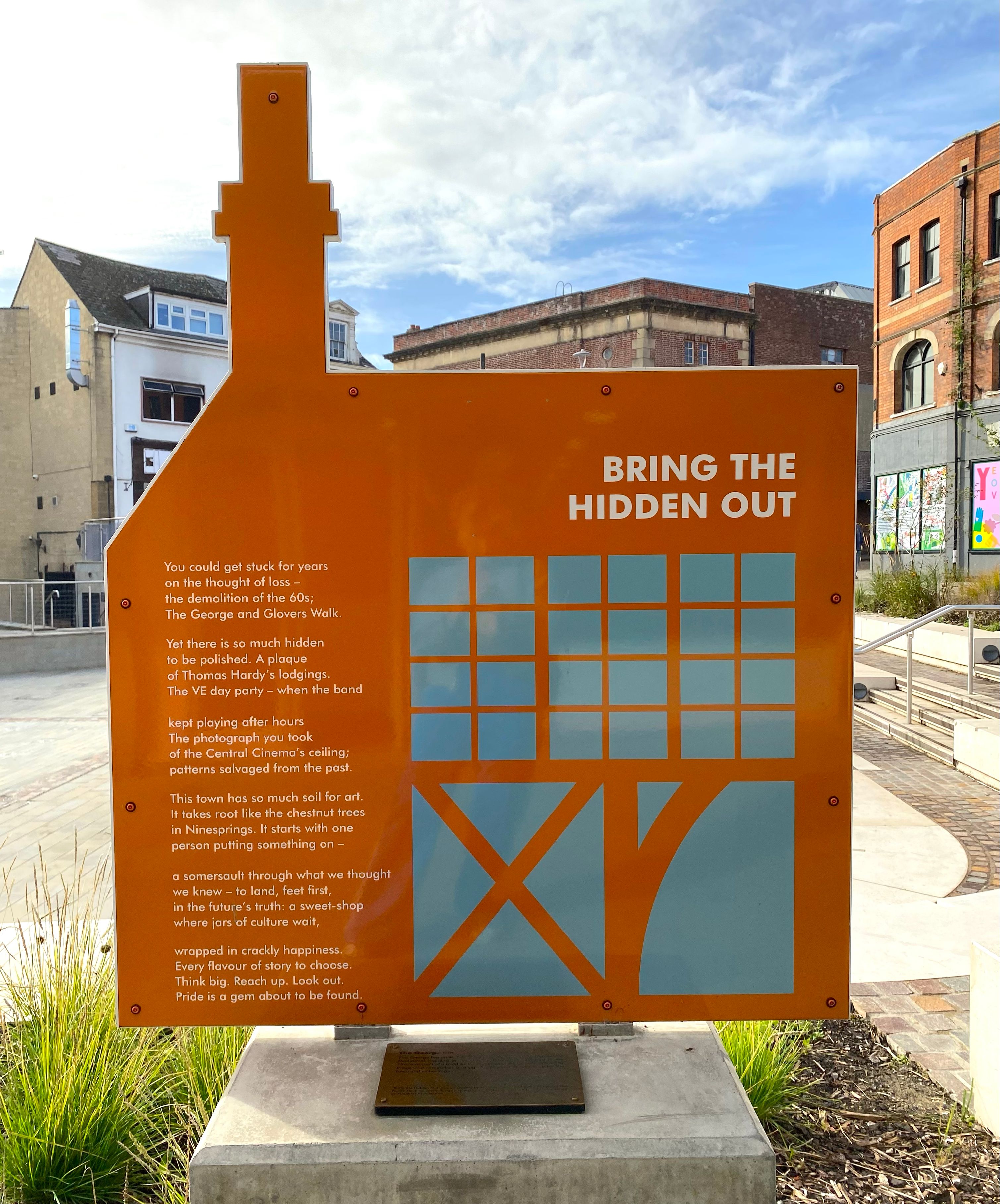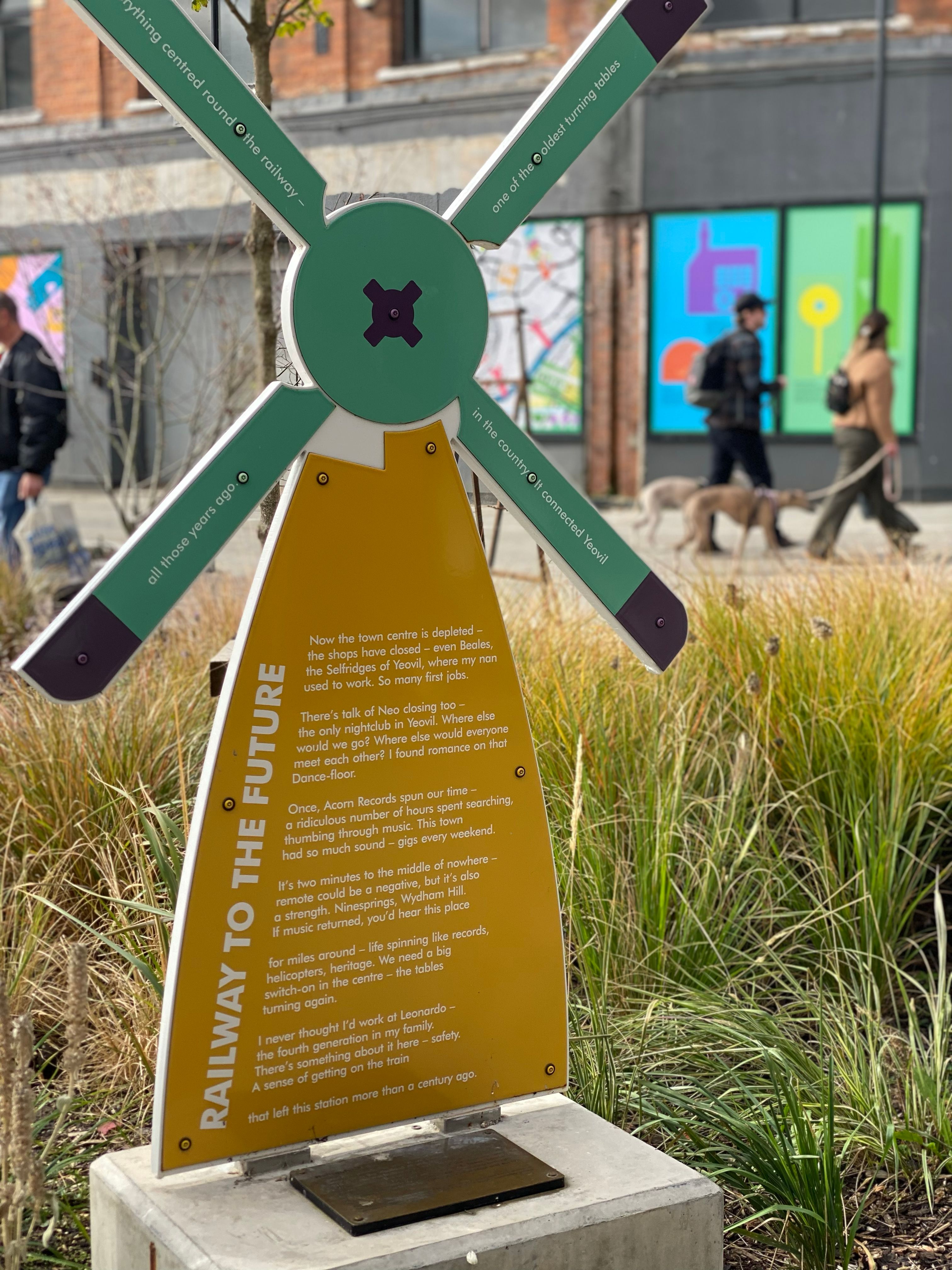 The Yeovil Refresh scheme will see the public spaces in the town centre transformed and work is currently underway. The wide-reaching project includes a giant outdoor TV screen, a bus gate, a water feature, an 'amphitheatre', wider pavements, pedestrianisation of the Borough area and more. The artwork pieces will add a new colourful, impactful and welcoming layer to the new public realm and contribute towards creating a sense of place and a visual identity for Yeovil, inspired by its local community. They are focused around the new Triangle area, the civic heart of the town.