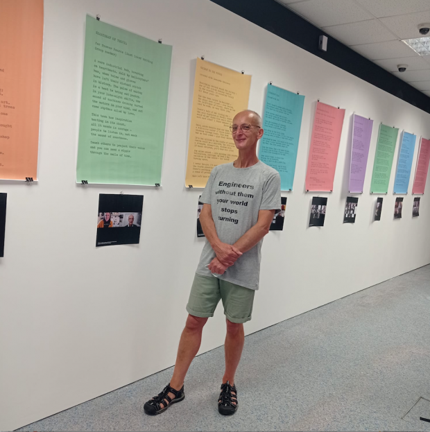 YOU&ME are collaborating with poet Beth Calverley on the project, inviting local groups to share thoughts, feelings and memories of Yeovil, as well as hopes and aspirations for its future, in a series of poetry co-creation sessions. Their conversations are transformed into typewritten poetry which will be incorporated in the artworks. The community engagement aspect on the project has been extensive, with YOU&ME also running a series of targeted collage / making workshops with Yeovil College Performing Arts students and local helicopter manufacturing company, Leonardo, aerospace trainees. The outcomes of the sessions were showcased in an interactive exhibition in local art gallery, Yeovil Art Space during July 2021.