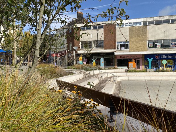 The project reimagined Yeovil’s town centre with a newly designed public realm featuring planting, trees, and a central amphitheatre with an outdoor performance space and water feature. Our artworks added a vibrant and welcoming layer to these changes, helping to shape a renewed sense of place and a distinctive visual identity for Yeovil — inspired by the people who live and work there.